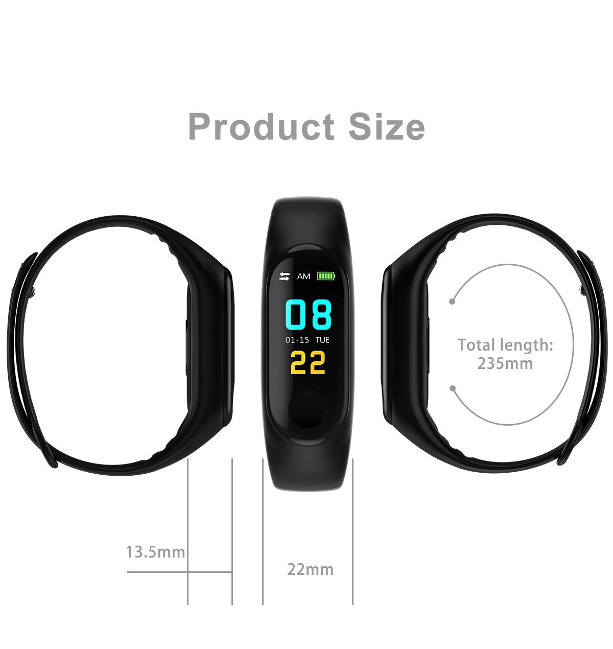 TDG M3 Smart Band Color Screen Blood Pressure Oxygen Heart Rate Android iOS