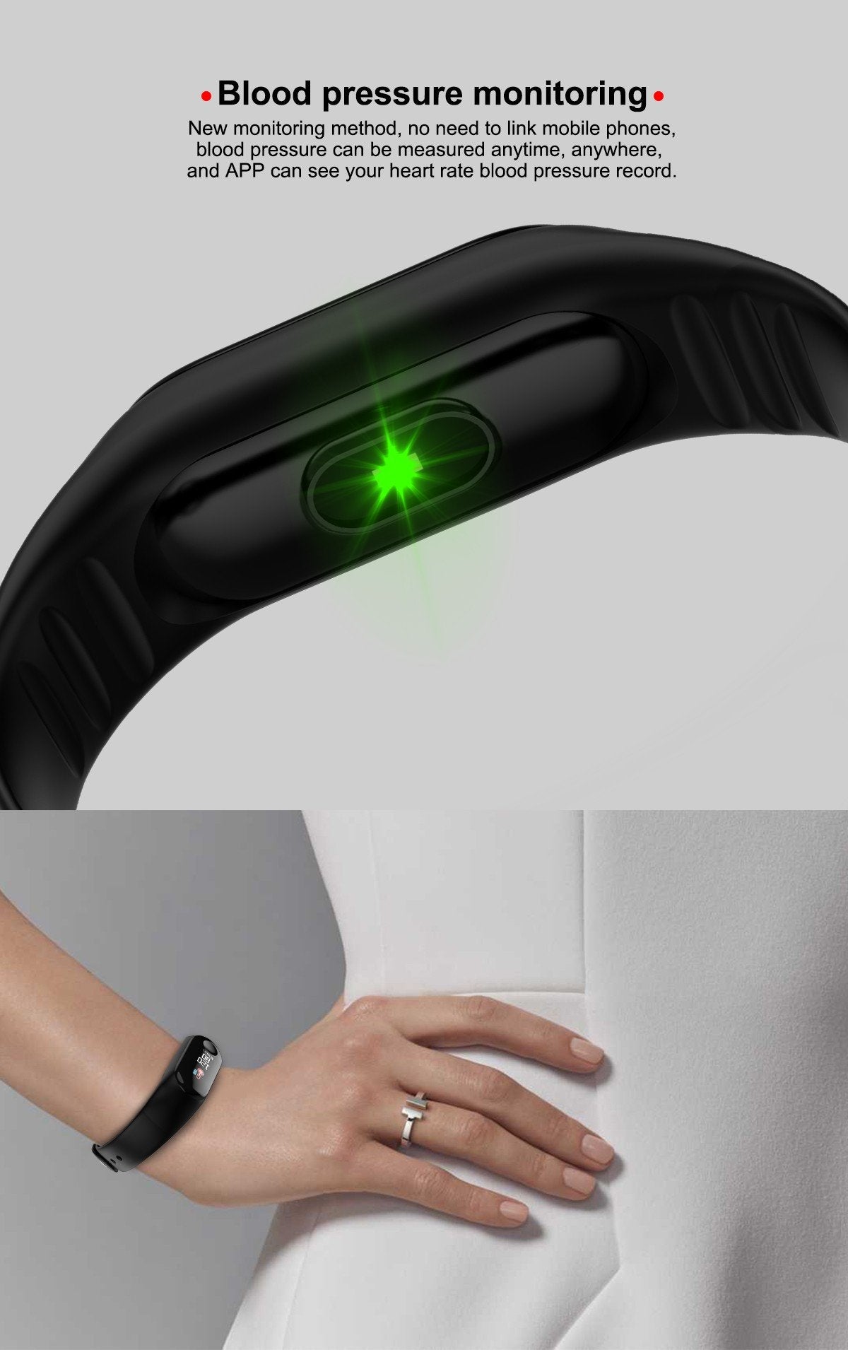 Meet the TDG M3 Smart Band - a fitness tracker and a watch built into one smart band. Want to view time? Just lift your wrist. And when you want to check your fitness stats on the move, simply tap the time button. It’s as easy as that.